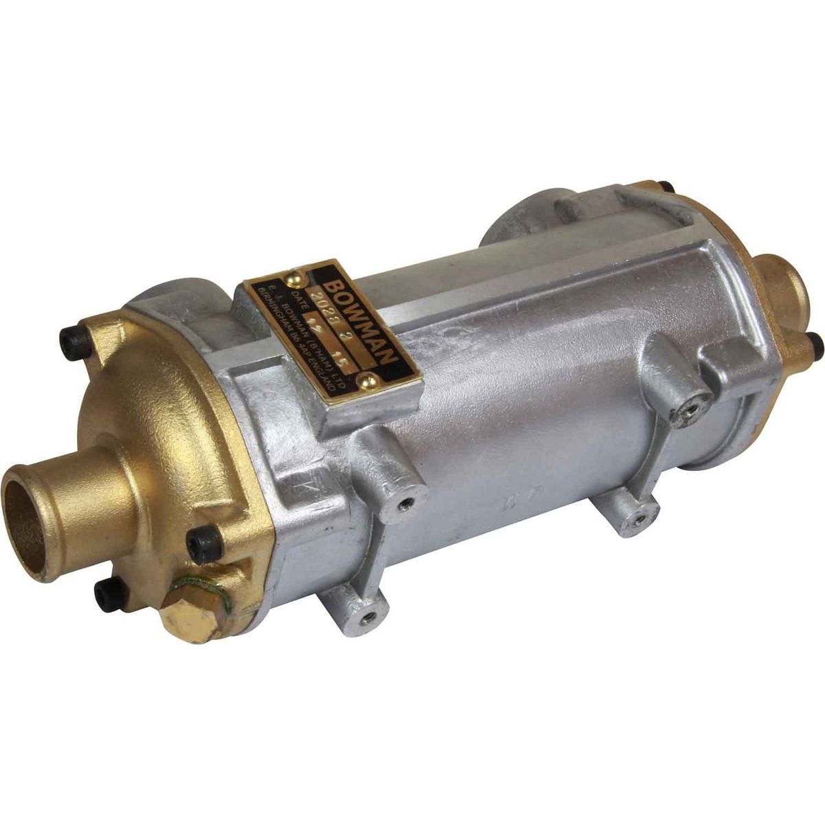 The Bowman EC100-2028-2 tubular oil cooler heat exchanger is designed for cooling engine oil.