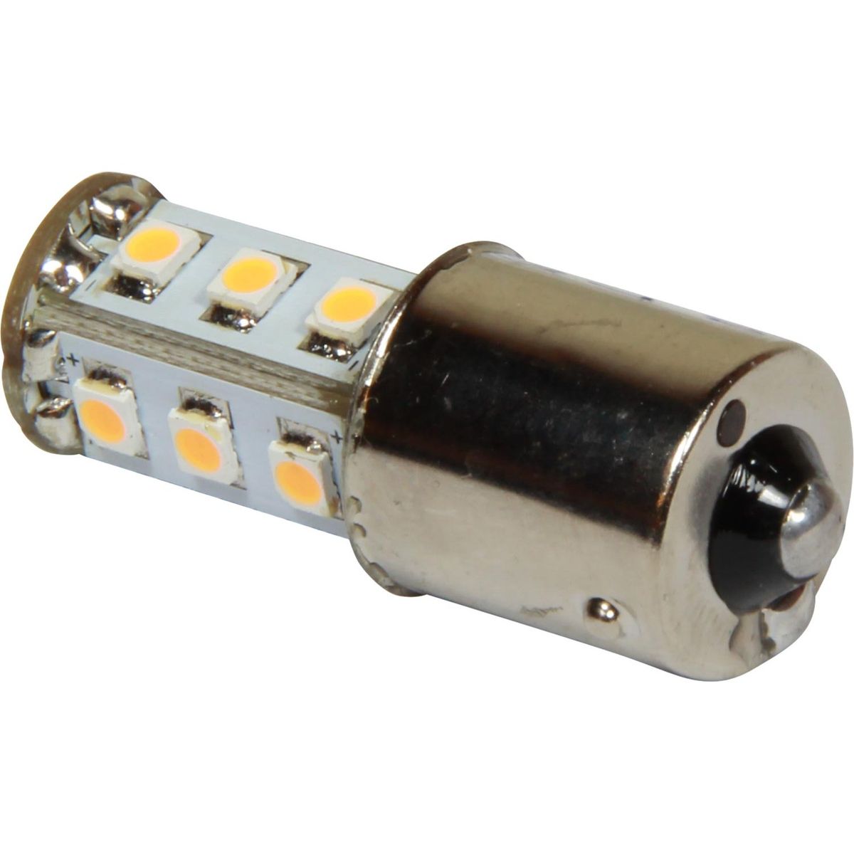 The Aten Lighting low energy LED light bulb is suitable for replacing most halogen or tungsten bulbs. This LED bulb has a Small Centre Contact (BA15s) fitting, which consists of a 15mm single central contact and a bayonet fitting. The LED bulb produces a white colour light with an output of 130 lumens. This light bulb is suitable for 12 volt and 24 volt electrical systems and is rated 1.4 Watts.