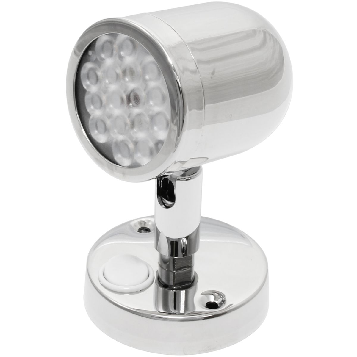 LED Adjustable reading light. 3.1W, 65mm dia base. Designed to operate within a wide voltage range of 8 to 30 volts, this LED light is compatible with both 12V and 24V systems, providing flexibility for various installation scenarios.