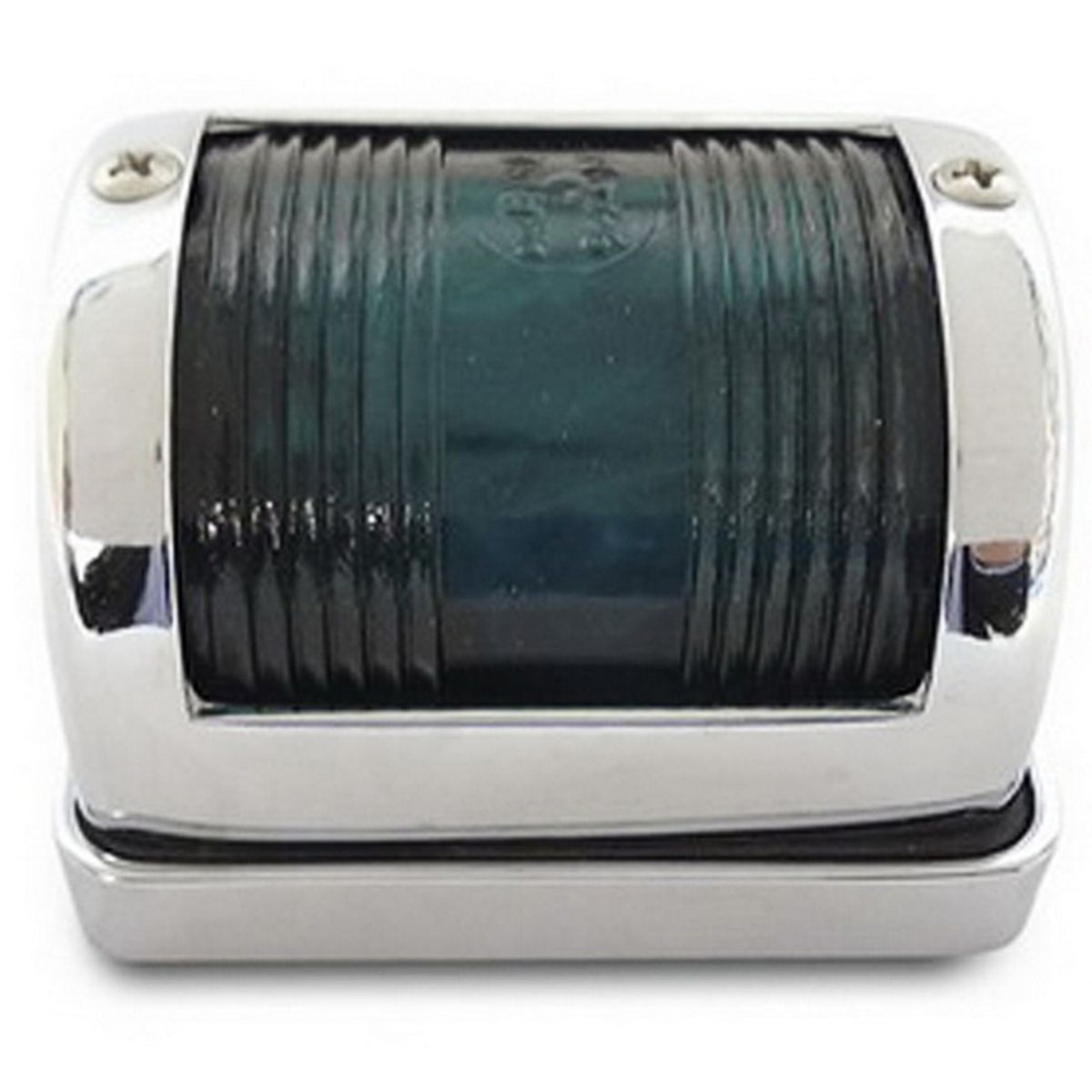 AG starboard green navigation light 12V DC with chrome case. Dimensions: 90mm Wide x 70mm Deep x 57mm High. Replacement 12V bulb VL-151, replacement LED 12V bulb VL-346.