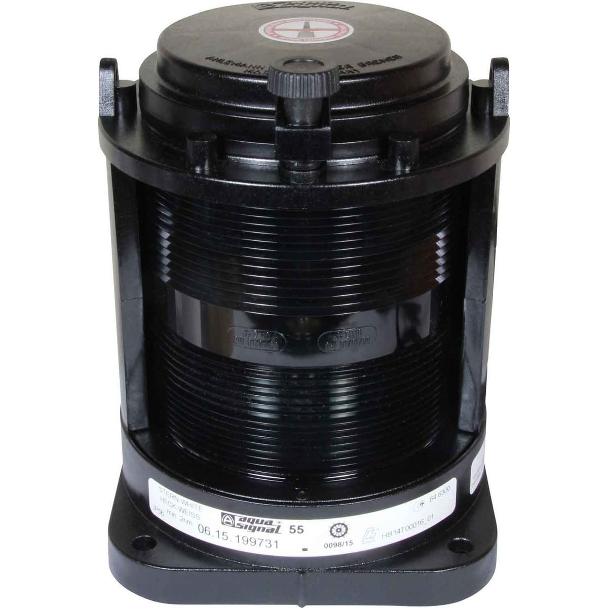 Aqua Signal 55 Series navigation light housed in a shock and impact resistant black polycarbonate body, which is non-corrosive, non-magnetic and seawater resistant. This is a Stern White navigation light suitable for vessels over 20 metres in length. It has a 135° arc with a 24 volt incandescent bulb included. The Aqua Signal 55 navigation light is suitable for base flange mount (screws not included) and comes pre wired with 1.5m special connection cable. This navigation light is rated IP56 for water ingress.
