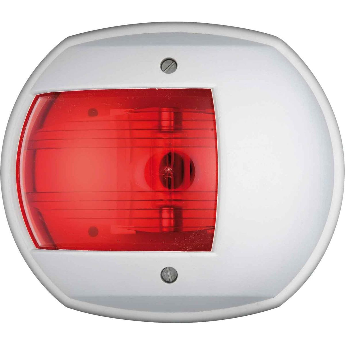 Osculati Maxi series navigation light housed in a white polycarbonate body. This is a Port Red navigation light suitable for vessels under 20 metres in length. It has a 112.5° arc with a 12 volt incandescent bulb included. The Osculati Maxi series is back mounted and is rated IP56 for water ingress.