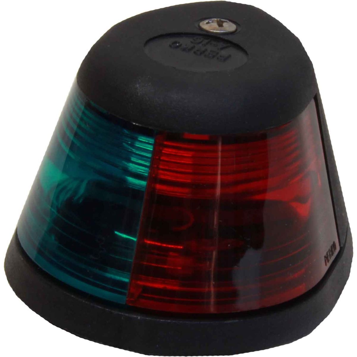 Perko 0252 series navigation light housed in a black polymer body. This is a Bicolour combined Port Red & Starboard Green navigation light suitable for vessels under 20 metres in length. Each colour has a 112.5ø arc (225ø overall) with a 12 volt incandescent bulb included. The Perko 0252 series is suitable for base mounting.