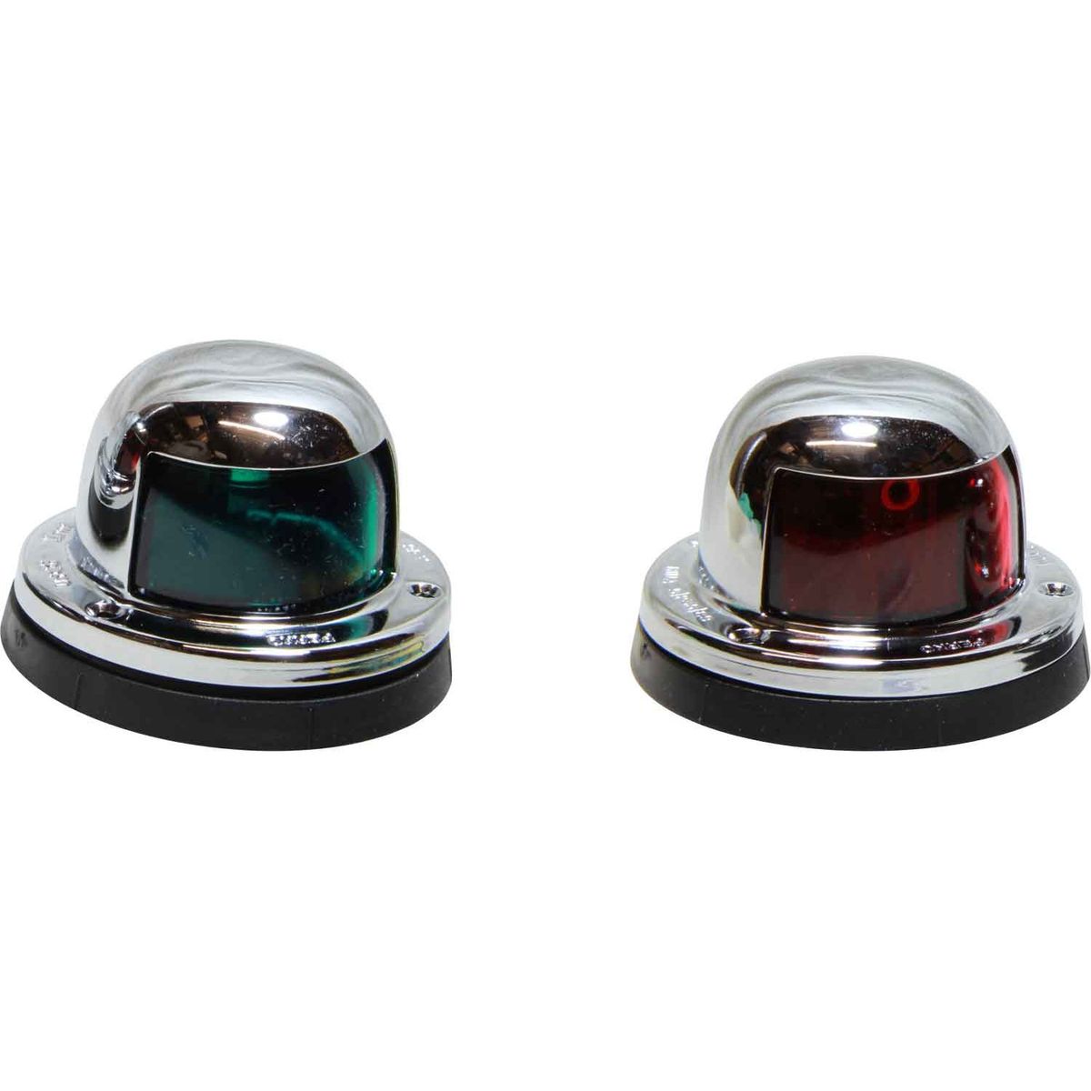 Perko 0963 series navigation lights housed in chrome plated brass bodies with black polymer bases. This pack contains 1 Port Red navigation light and 1 Starboard Green navigation light suitable for vessels under 12 metres in length. Each light has a 112.5ø arc with a 12 volt incandescent bulb included. The Perko 0963 series is suitable for horizontal mounting.