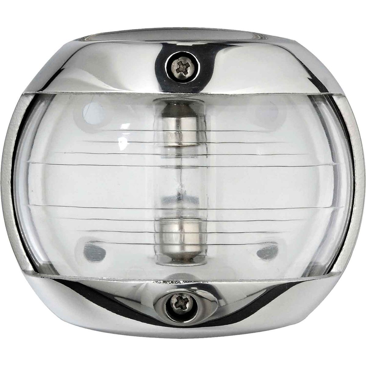 Osculati compact series navigation light housed in a stainless steel 316 body. This is a Masthead White navigation light suitable for vessels under 12 metres in length. The navigation light has a 225° arc with a 12 volt incandescent bulb included. The Osculati compact series is back mounted and is rated IP56 for water ingress. The navigation light features 4 mounting screw holes, which are 35mm apart from left to right and 28mm from top to bottom.