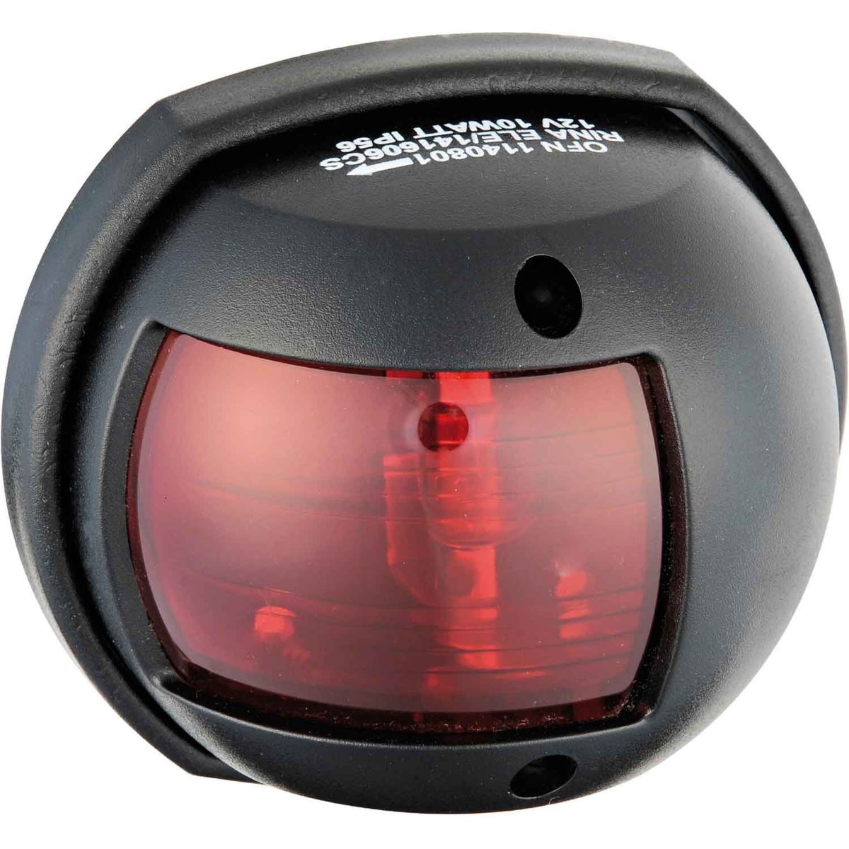 Osculati compact series navigation light housed in a black polycarbonate body. This is a Port Red navigation light suitable for vessels under 12 metres in length. The navigation light has a 112.5° arc with a 12 volt incandescent bulb included. The compact series is back mounted and is rated IP56 for water ingress.