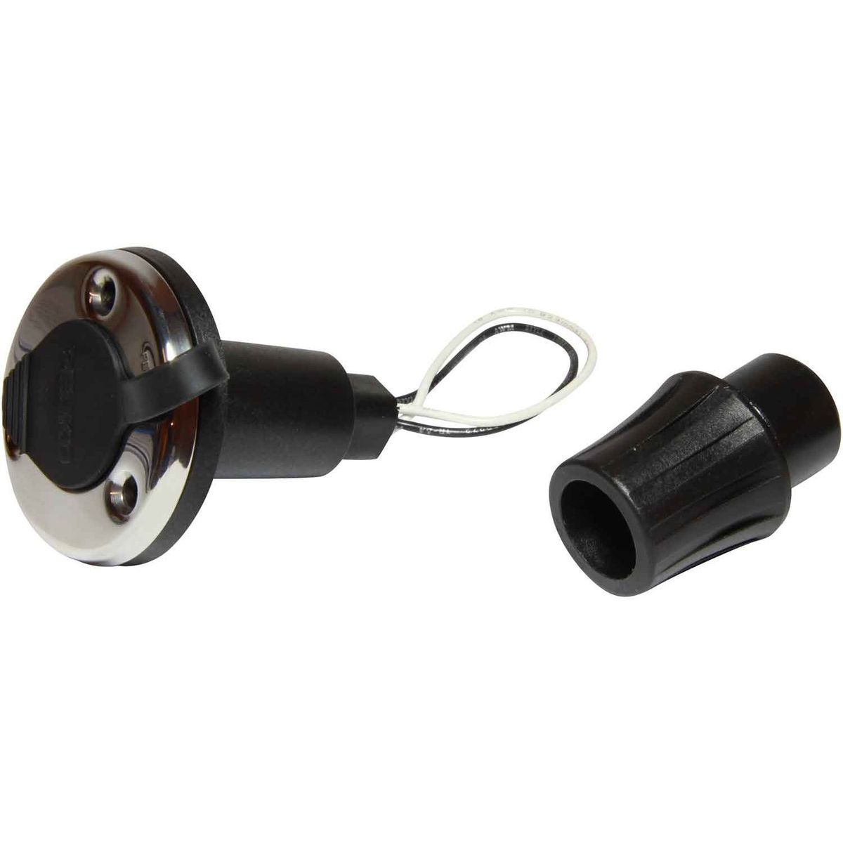 The Perko stainless steel pole light base features a waterproof snap on cover and pigtail leads. This package includes a locking collar to allow interchangeability with the old, discontinued style pole light bases