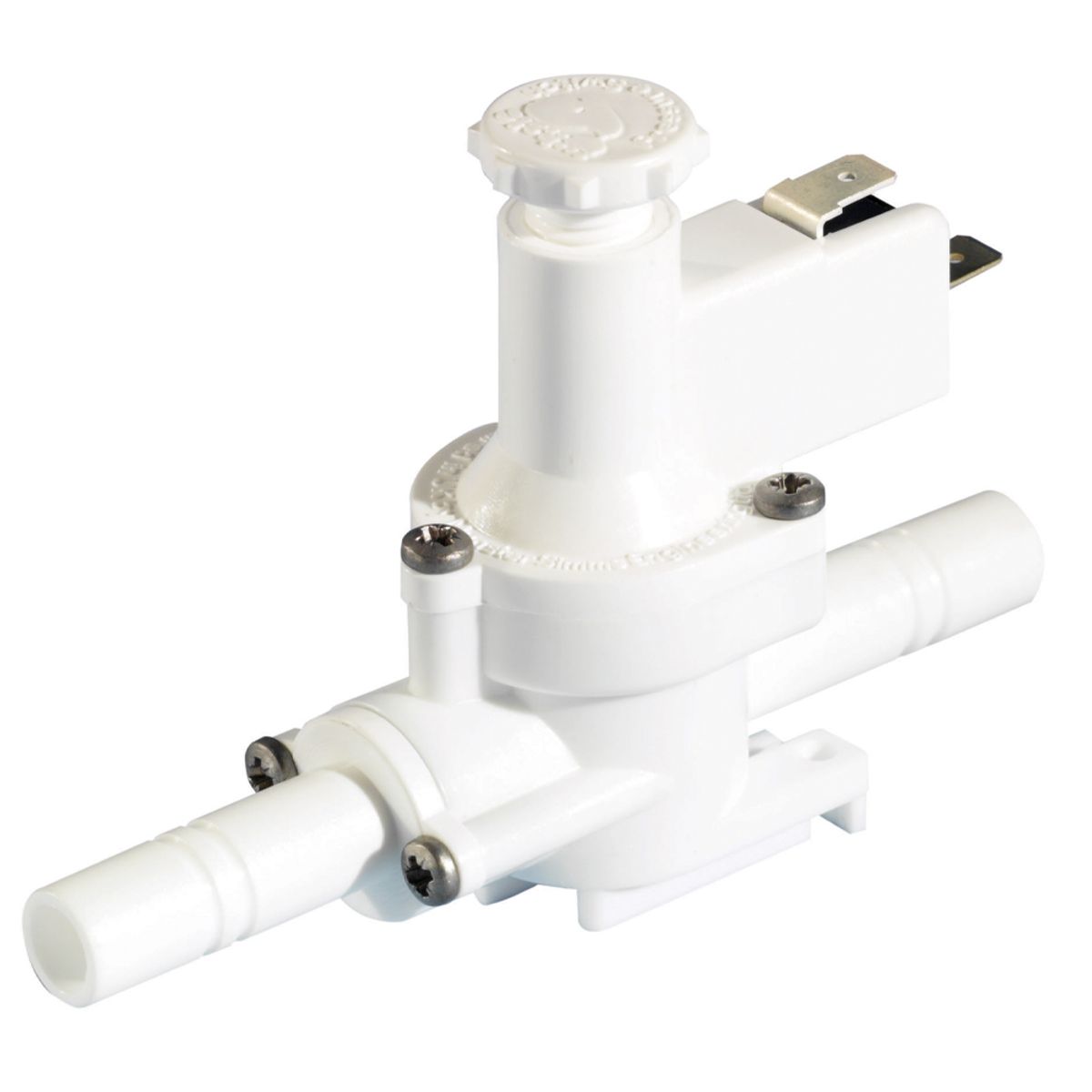 The pressure switch features a stem connector each end suitable for 12mm Whale quick connectors or 13mm inside diameter hose.