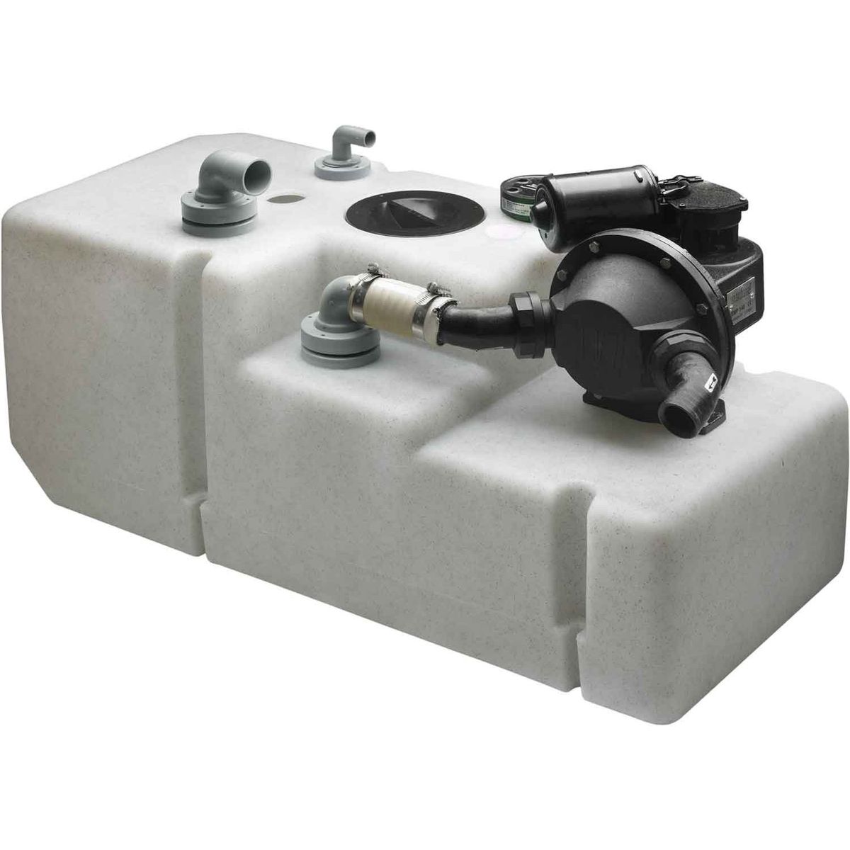The Vetus WWS6112B waste water tank is made of odour impermeable polythene. The system comes complete with a Vetus EMP waste water pump, an inspection cover, a tank gauge sender (level gauge must be ordered separately), a plastic suction pipe with a 38mm diameter angled hose connection for discharge from ashore, two securing straps and one 19mm diameter connection for the breather.