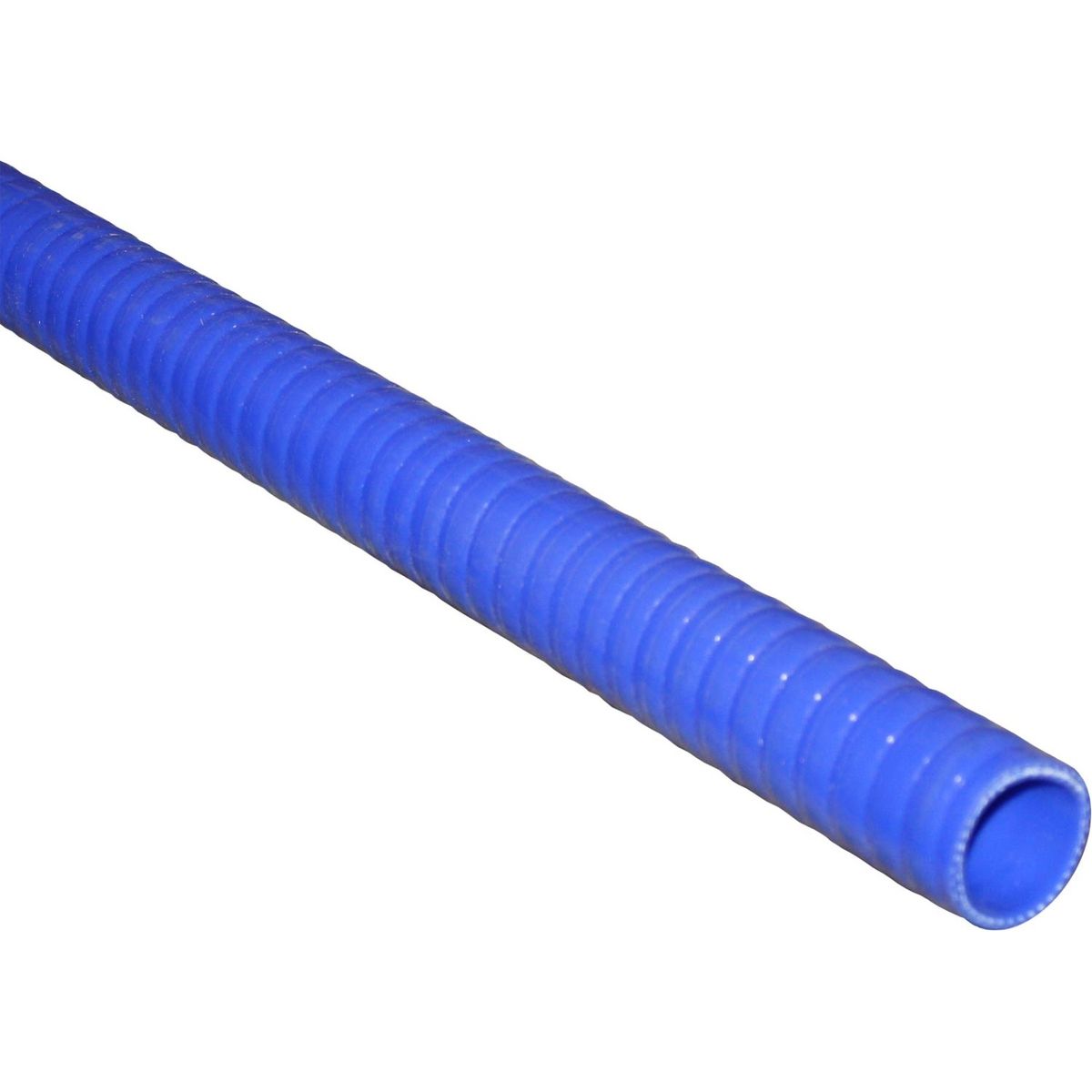 This is a straight length of flexible silicone hose in blue. The Superflex range is suitable for awkward installations and is available in a wide range of bore sizes.