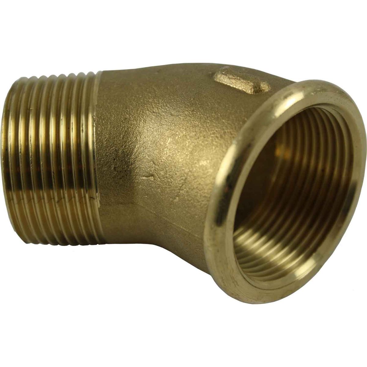 Maestrini pipe connection elbow made from brass. A 45ø elbow is used to connect two pieces of equal sized pipe at a slight angle.