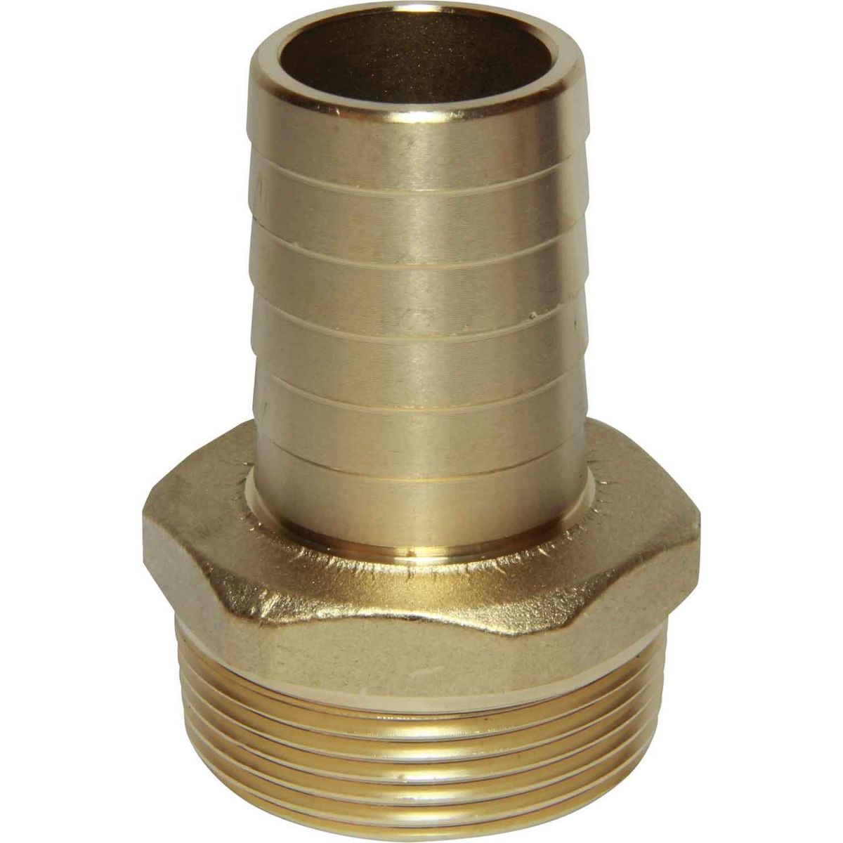 Maestrini straight hose tail fitting made from dezincification resistant brass (DZR), also known as CR brass which stands for corrosion resistant. This material is a brass alloy which prevents corrosion, caused by the loss of zinc in the fitting, making it suitable for exposure to sea water. This hose tail connects a 1-1/2″ BSPT threaded pipe to a 32mm hose connection and includes a hexagonal shoulder.