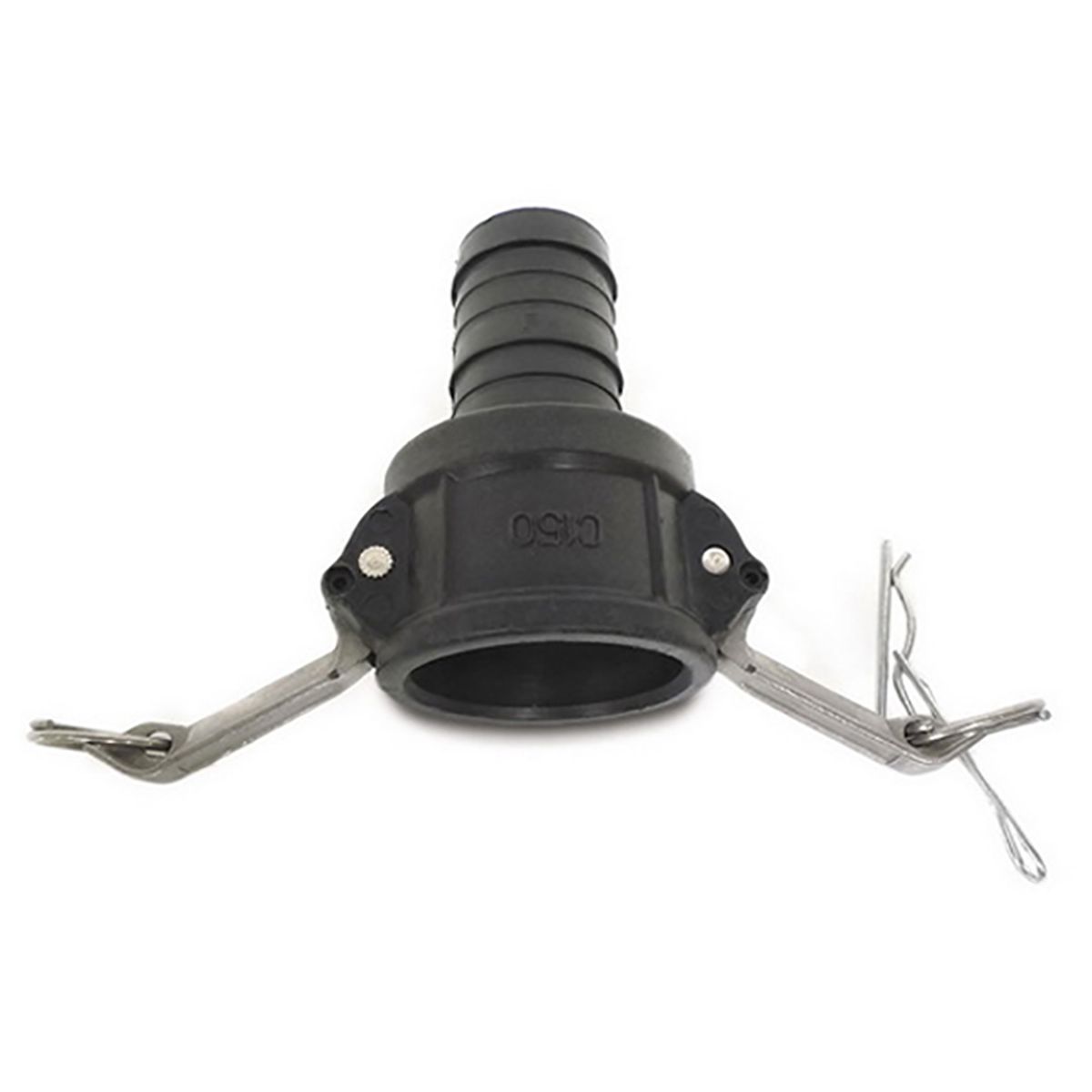 A C-type camlock quick coupling made of polypropylene plastic, with a 1-1/2″ hose tail. Part of the quick release mechanism in pumping out a boat. Maximum working pressure: 10 bar. Length: 110mm.