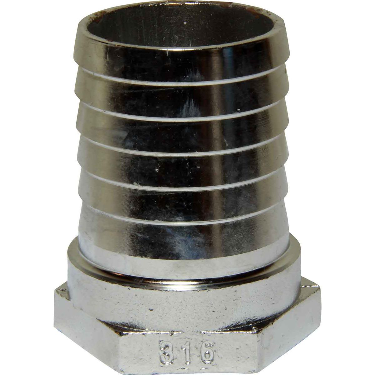 Osculati straight hose tail fitting made from stainless steel 316. This material is the marine grade stainless steel making it suitable for exposure to sea water. This hose tail connects a 1-1/4″ BSP threaded pipe to a 40mm hose connection and includes a hexagonal shoulder.