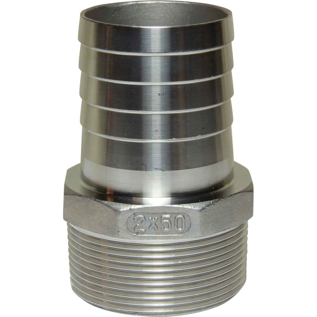Osculati straight hose tail fitting made from stainless steel 316. This material is the marine grade stainless steel making it suitable for exposure to sea water. This hose tail connects a 2″ BSPT threaded pipe to a 50mm hose connection and includes a hexagonal shoulder.