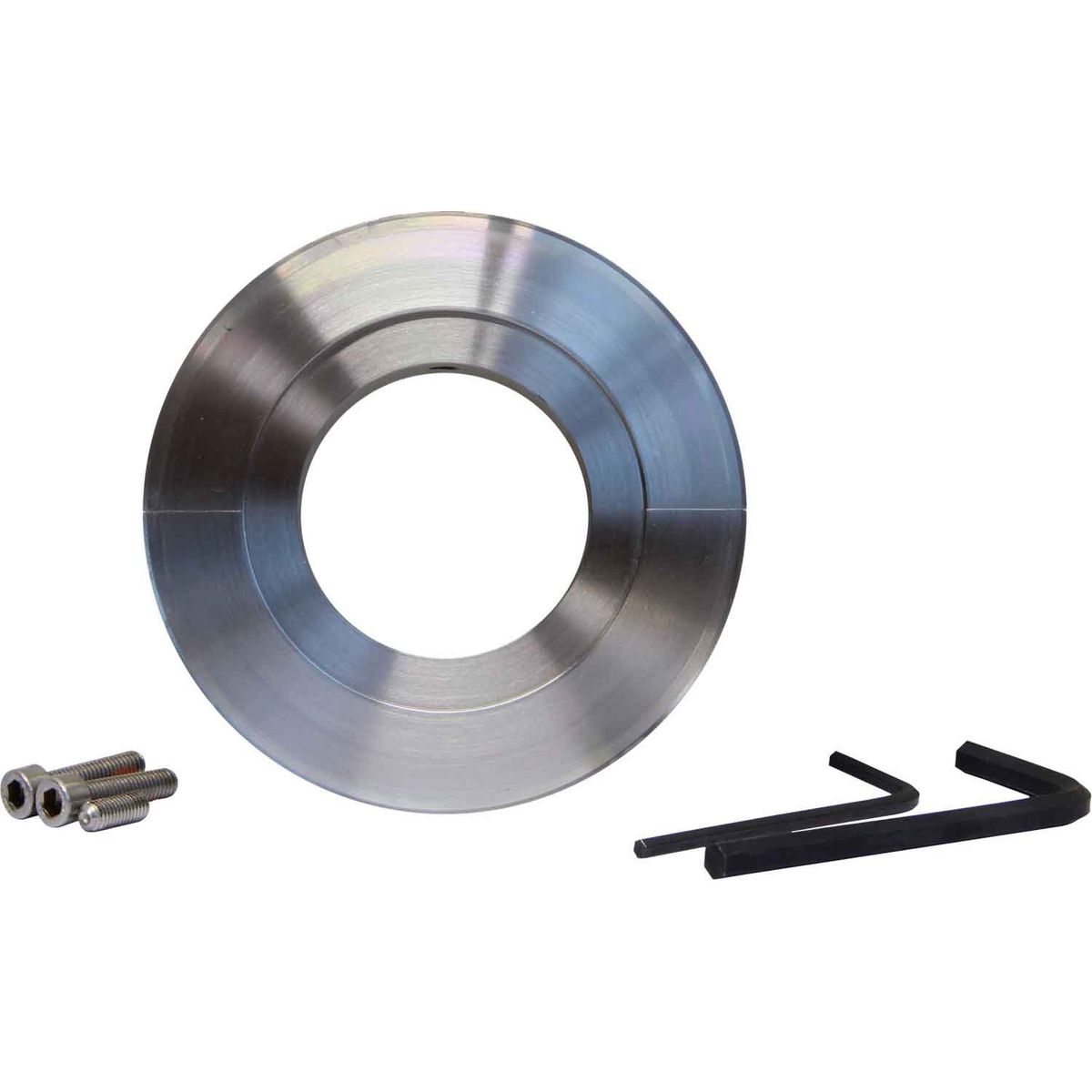 This clamp-on Prop Protector weed and rope cutter is supplied as an assembly that is split into two halves along the longitudinal axis so that it can be installed on the shaft without removing the propeller.