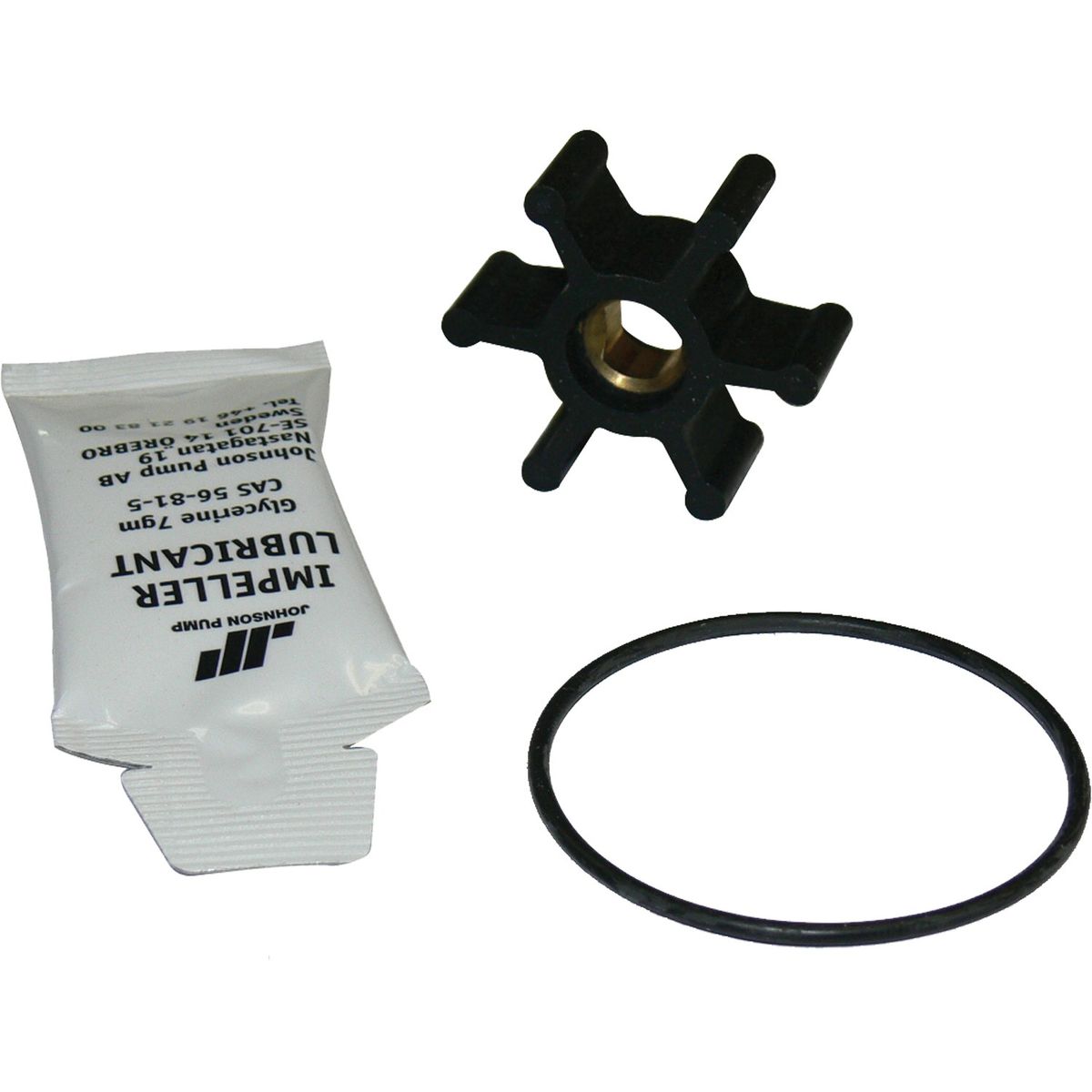 The Johnson flexible pump impeller has six blades and is supplied complete with O-ring, lubrication gel and instruction manual to aid installation of the impeller into the flexible impeller pump.