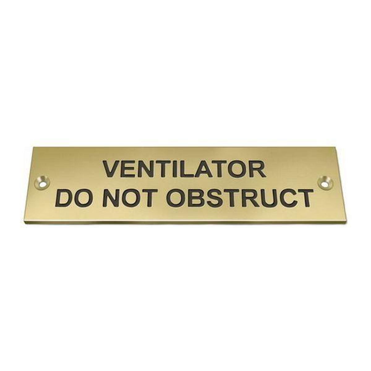 A ‘Ventilator Do Not Obstruct’ label made of polished brass, with black engraved wording. This boat sign features two countersunk fixing holes.