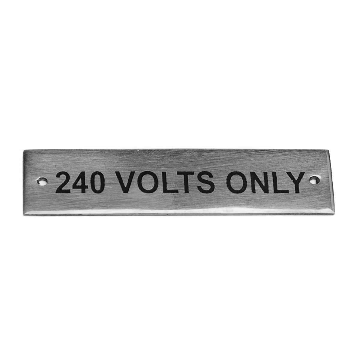 Chrome screen-printed ‘240 Volt Only’ label 75 x 19mm.
