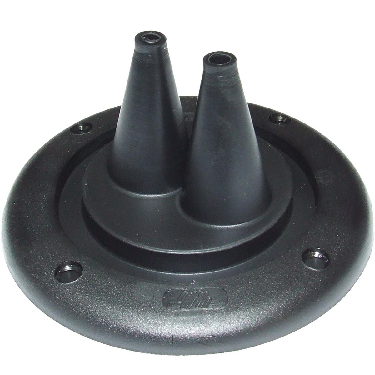 Single black rubber grommet / gaiter for sealing twin cables through a bulkhead. Can be used with electrical cables or control cables.