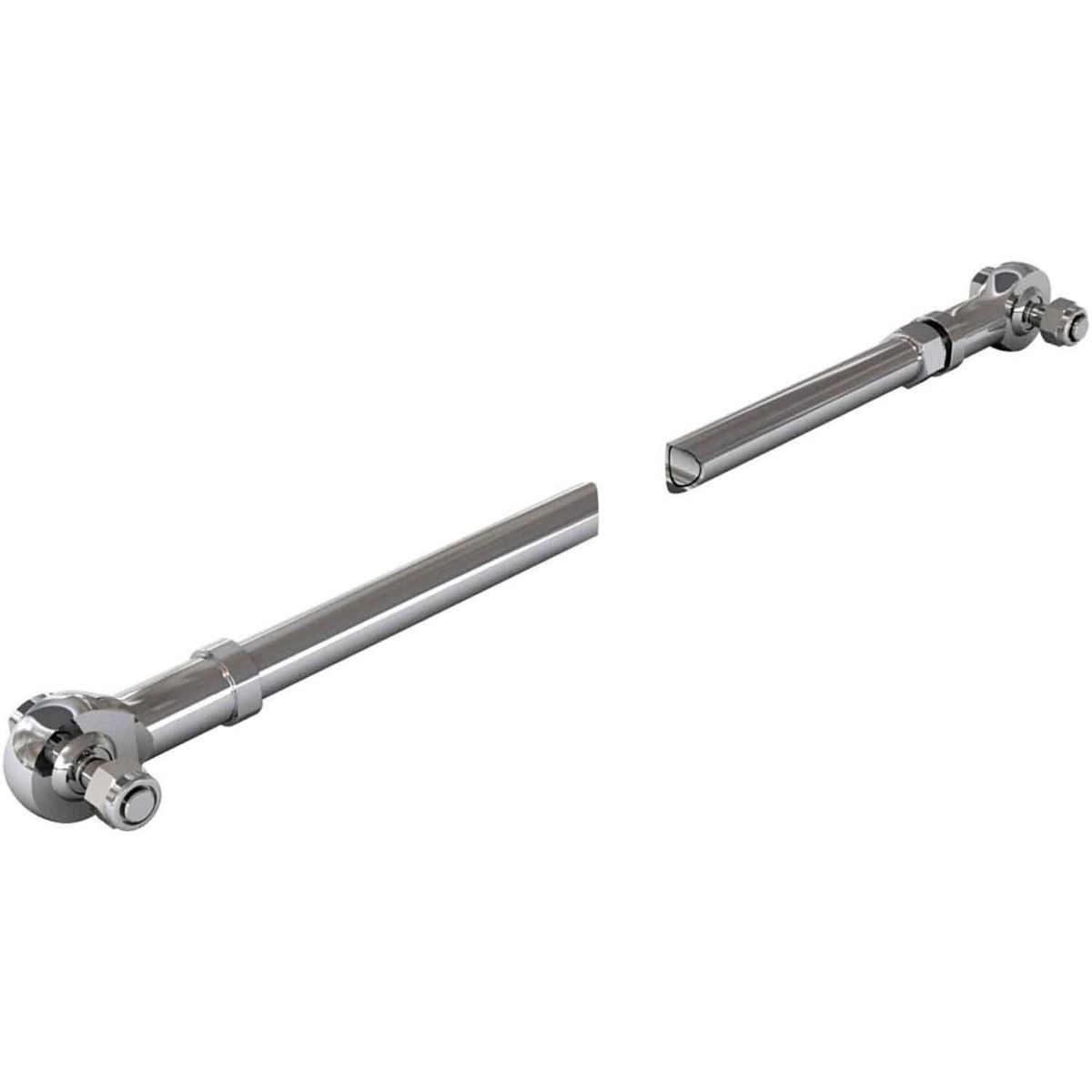 Vetus stainless steel tie bar used for connecting two outboard motors which can be up to 300 HP each. The tie bar has adjustable ends and is supplied with 3/8″ UNF connection bolts. The maximum length of the steering arms is 915mm and the tie bar can be easily cut to the required length.