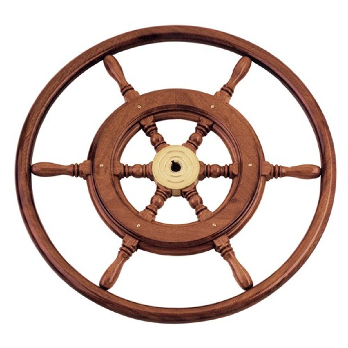 6-Spoke traditional wooden steering wheel made from mahogany spokes and wheel, brass trim and brass centre cap. This wheel measures 600mm (23.6″) in diameter and are designed to fit 11/16″ to 3/4″ taper helms.