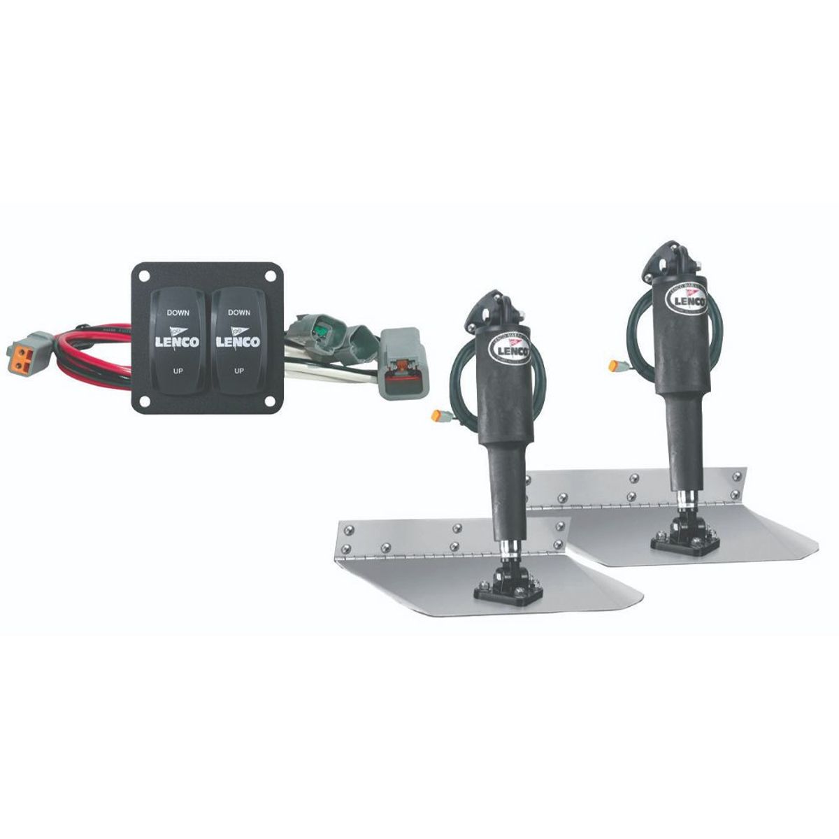 Lenco 15101-104 trim tab kit with plates, actuators, switch and harness. Everything you need in one box! The Standard trim tab kit with the added benefit of having the NEW integrated switch choice and power connector all included. Boat lengths 16′ (4.9m) to 25′ (7.6m). Blades are constructed of 12 gauge (2.7 mm) laser cut 304 stainless steel with a 5/8″ (1.6 cm) flared trailing edge & 1/8″ (3.2 mm) diameter hinge pin. Upper and lower high impact corrosion proof mounting brackets with mechanical cable gland seal. Switch included.