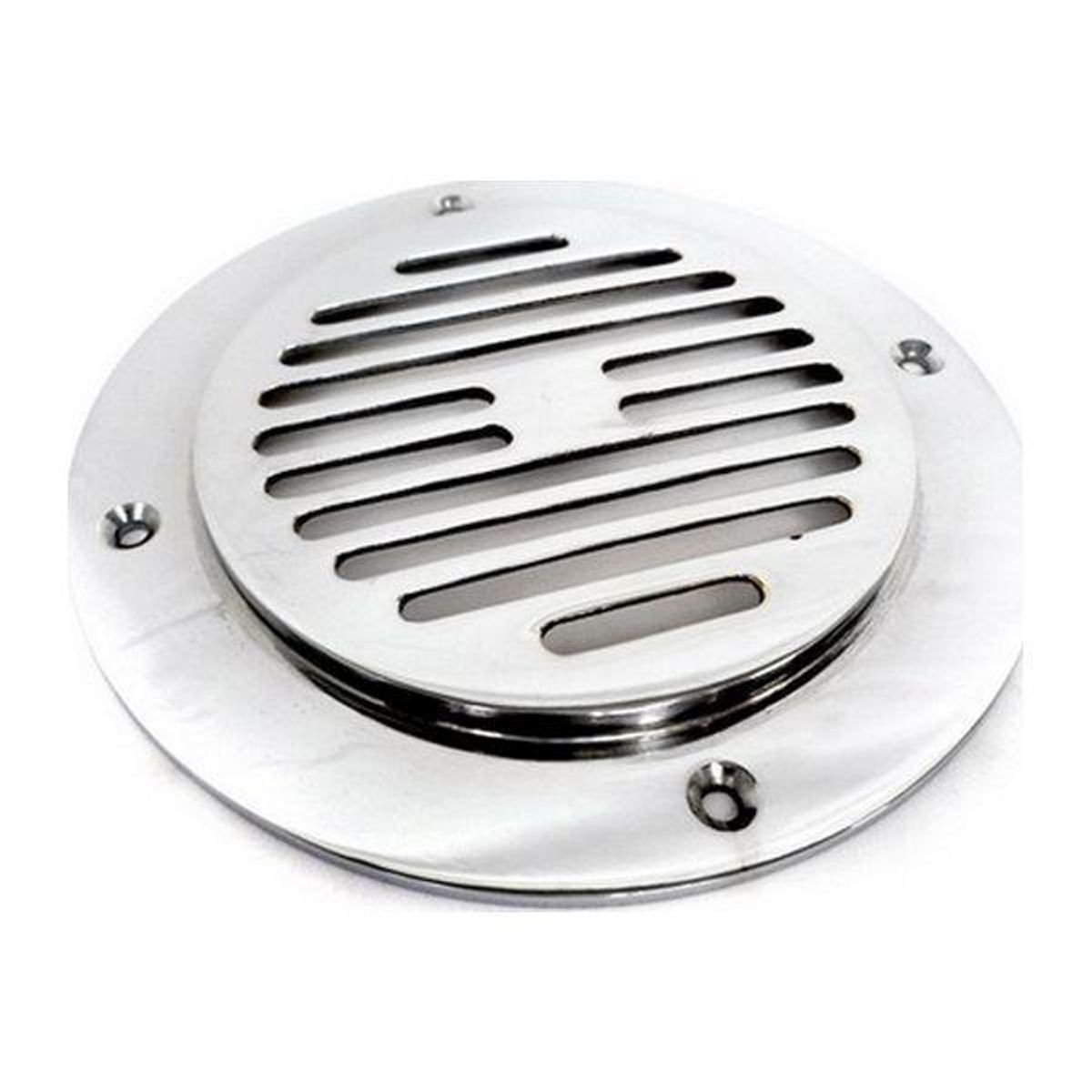 A circular cast chrome interior grill with a 6″ outside diameter and grated air vent surface.