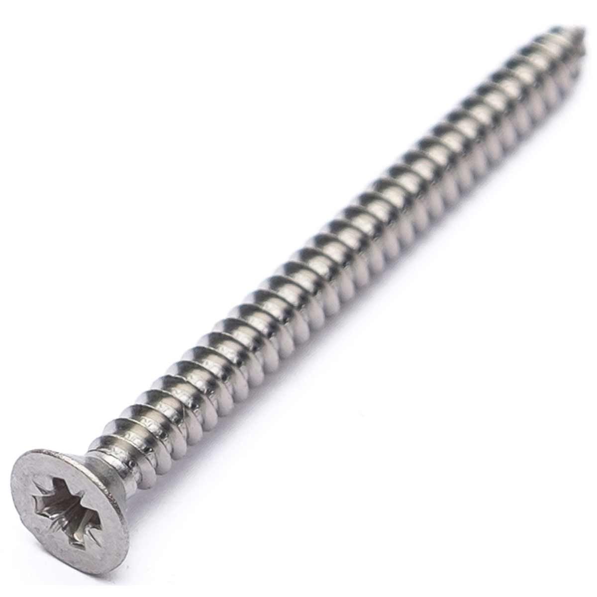 Self tapping stainless steel screw with a countersunk pozi head No.8 (4.2), suitable for use with ECS vents.
